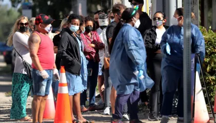 Com o aumento de casos devido à Ômicron, filas para testes da Covid-19 em Fort Lauderdale, na Flórida, nos EUA Mike Stocker/Sun Sentinel/Tribune News Service via...